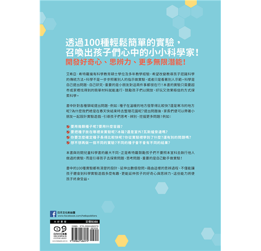 「不只是雨天無聊時的科學實驗參考書,這本書可以告訴家長如何激發孩子的好奇心和學習多種技能,協助孩子解決問題及培養科學思考的能力。艾希亞透過實際體驗讓大家知道,每個孩子都能設計實驗、記錄進度,並且與...