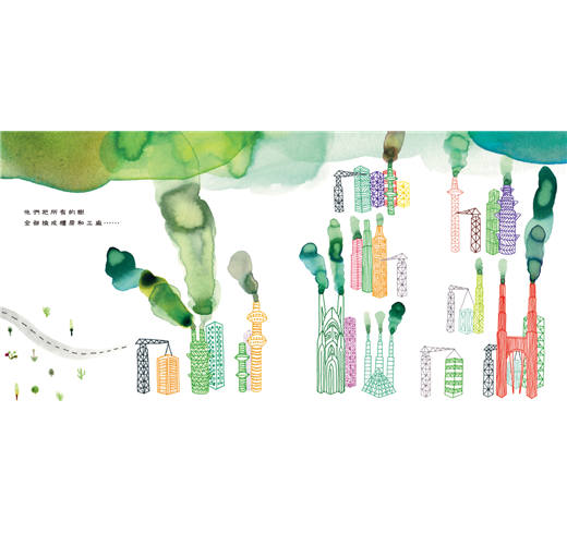 ▲李崇建:「這本線條簡單,寓意豐富的繪本,能反覆欣賞且有層次,從視覺的變化啟迪心靈。作者將森林裡每棵小樹,擁有生命力的樣子,表現得很獨特,隨著人類的進駐,城市的建築線條,與森林交錯著意象,渲染出一種心驚且驚醒的面貌,這是圖像創造的力量。最後帶出小樹的希望,也是人類的希望:每個孩子都是一棵小樹,這是森林的開始。」