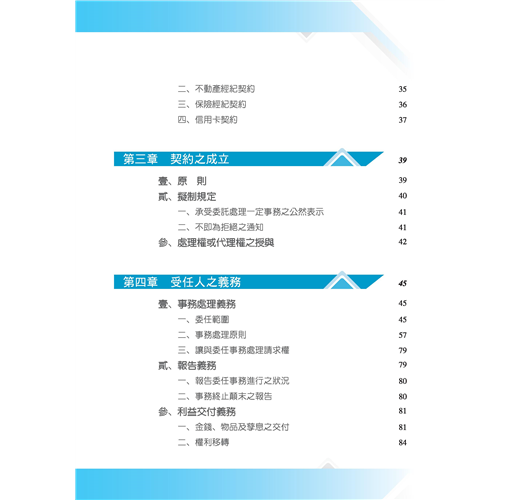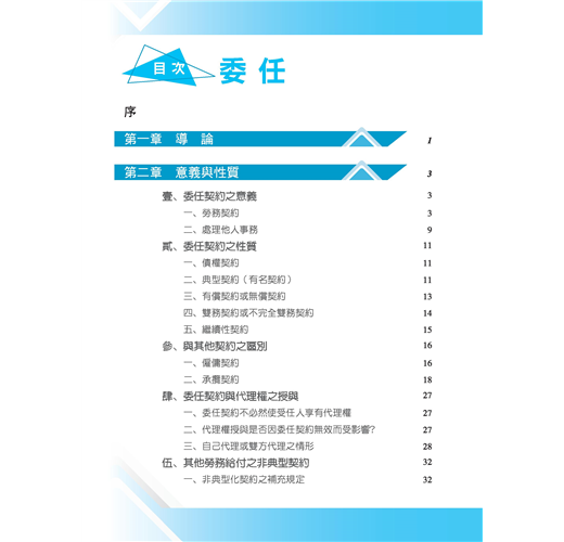 轉眼間回國多年,每天忙碌於教學、研究與各式行政事務間,雖然一直想撰寫書籍,卻也一直擱置,感謝三民書局的邀約與編輯同仁溫柔的「提醒」,終於讓「委任」一書能完成。