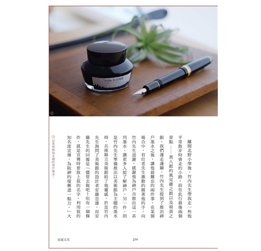 「文具是呈現想法的媒介,不認真看待不行!」他抱持著對文具的熱情,進行文具的收藏與研究,透過網路、雜誌專欄、演講和出版,傳遞文具的品味內涵。