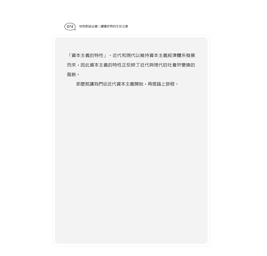 要培養知性對話的能力,《知性對話必備!讀懂世界的生存之書》是好道具。作者蔡社長整理的資料,乍看之下是高中歷史和公民的濃縮版,實際上是在有系統地回答兩個重要且泛用的問題: