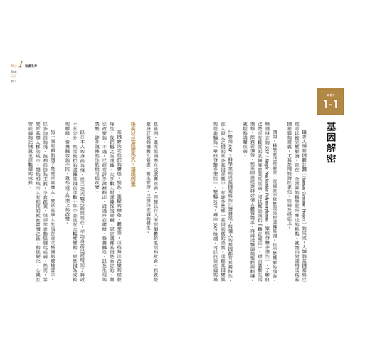 當基因不再是無字天書,而是可以透過檢測得知其中資訊,確切解密每一個人獨特的生物特徵(體質)時,最重要的是,如何判讀並進一步運用於健康的維護,加以從日常裡的飲食、營養、生活型態和內分泌去改善、優化基因,讓人的生命和生活更加美好。畢竟,風險並不等於病因,評估患病風險,是為了啟動風險管理控制,而不是陷入恐慌(或絕望)。