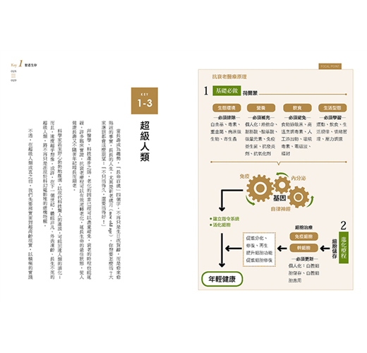 在實證醫學與精準醫療的時代,抗衰老醫學也「個人化」精準醫療的體現,自瞭解自我的基因做起始,從荷爾蒙、免疫、自律神經、營養各個面向,結合自然老化與疾病的病生理學為基礎,利用功能醫學的檢測,對現有的身體功能做完整評估,並且瞭解環境因子對身體的影響,再據以設計出客製化的保養與治療計劃,適切地管理與執行,讓人體的細胞、組織、器官至系統層次,全面活化、維持年輕,達到健康長壽的目的,我參與本書的製作,就是期待書中的知識能成為讀者擁有開啟,通往健康長壽大門的金鑰。