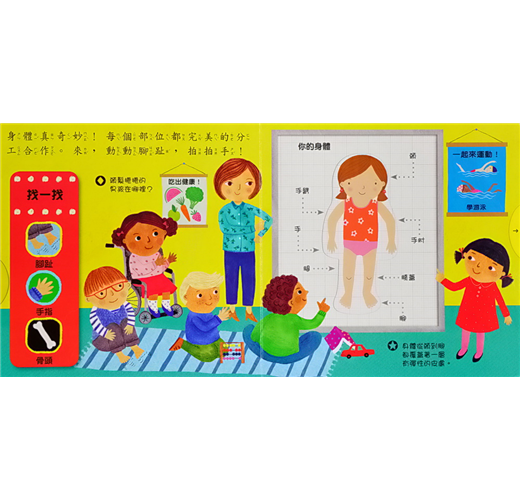 推一推,轉一轉,一起探索人體內部的奧妙,認識各部位完美的分工合作,進而了解照顧好身體,才能健康快樂長大!