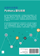 量化投資在學術界及業界的發展日益蓬勃。它的涵義是在投資的各個階段中,利用數學、統計、電腦等分析工具來建立模型,並據以客觀地分析數據,按事先設定好的投資邏輯來進行投資決策,不同於以往的主觀交易。本書旨在對量化投資作廣泛與初步的介紹,並佐以Python語言實作,希冀讀者能藉此書對資訊科技與金融結合應用,略窺一斑。