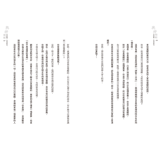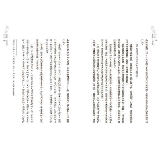 你是覺醒的,只是你不知道而已。你知道「自己真正是誰」,也不再受虛幻的謊言或假象所蒙蔽,現在要做的就是在生活中一一實踐,並鼓勵其他人邁向覺醒。