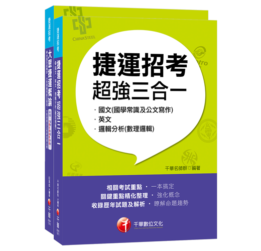 2B051071 捷運招考超強三合一﹝(含國文(國學常識及公文寫作)、英文、邏輯分析(數理邏輯)﹞ 出版日期:2017/12/25