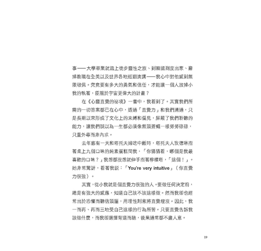 ‧教導讀者如何開啟心中直覺的原理與實際的練習方式。