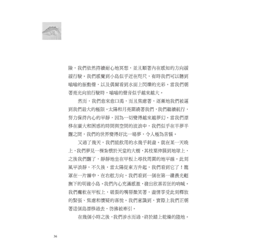 「想像之島」章節中翻印的水彩畫來自瑪德琳.塔托(Madeleine Tuttle)的創作,如果書本背面沒有附上 其彩色單張水彩畫,你可以上網頁www.willtuttle.com/ Paintings.pdf 觀賞。