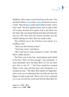 樵夫家的貓女士,趁著所有人熟睡時,偷偷把吉爾和梅蒂叫醒,並慫恿兄妹倆在黑夜中出去找青鳥,而且不能告訴光仙子。三人來到了枝葉參天的樹林,樹木高聳濃密得見不著月光…未知的危險正一步步逼近兄妹倆…