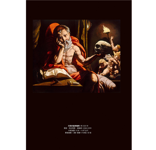 這幅畫還真令人摸不著頭緒,不知其意圖為何。聖傑羅姆一向以沉思神情最為大眾熟知,此畫大大顛覆過去形象,聖傑羅姆的認真嚴肅換成了目瞪口呆,也罷,就勉強接受吧,但看看那張完全不搭軋的臉,這教人怎麼說才好呢!