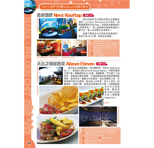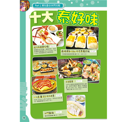 【吃得暢快】地道泰菜、韓菜、日菜、意菜、中菜、各式小吃(例如大受歡迎的芒果糯米飯)一網打盡,不是只吃泰菜那麼獨沽一味!最吸引的是書內會推介香港罕見的天台餐廳,一邊360度無邊際盡覽曼谷景色,一邊享受特色佳餚──人生實在太寫意了!