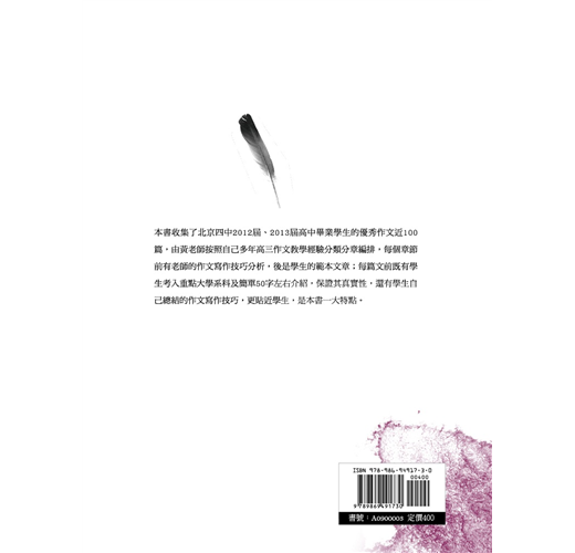 本書收集了北京四中2012屆、2013屆高中畢業學生的優秀作文近100篇,由黃老師按照自己多年高三作文教學經驗分類分章編排,每個章節前有老師的作文寫作技巧分析,後是學生的範本文章;每篇文前既有學生考入重點大學系科及簡單50字左右介紹,保證其真實性,還有學生自己總結的作文寫作技巧,更貼近學生,是本書一大特點。