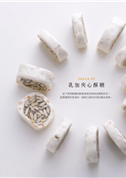 延續《就要不一樣的糖果點心》的框架再創新,整合新式手法的創意,除了多層次口感的糖飴菓子,雪花菓糖酥、奶糖酥、蔥酥餅一系列以牛軋糖為主題的貫穿與創意延伸外,還有傳承濃厚在地製法與口味變化的新滋味,例如軟糖、牛奶糖、酥糖、米花糖,以及歡樂場合、應景節慶少不了的造型、夾心糖果等,運用基本材料的風味組合,創造出口味新變化。