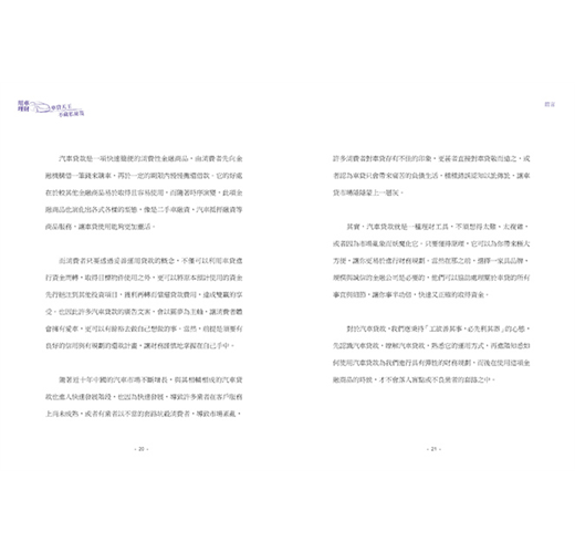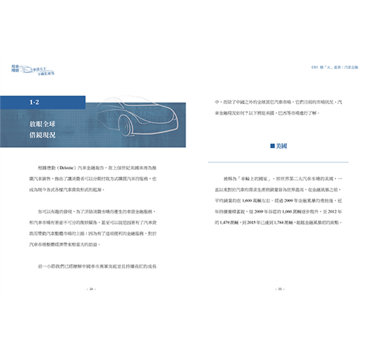 書中將複雜的金融商品、概念,以簡單圖示、案例解說方式,用淺顯易懂的文字進行表述,你將發現原來汽車金融產業比想像中簡單。