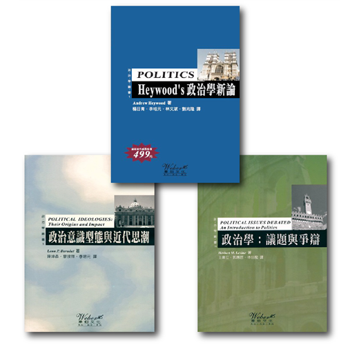 本套書共三本:《Heywood’s 政治學新論》、《政治意識型態與近代思潮》、《政治學:議題與爭辯》。