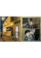 昏暗的色調和大片的藍,展開了這個發生在黎明前的故事,到後段天亮之後,柔和的黃出現,就像陽光驅散了黑暗。樸質的筆法下展現的是一般家庭的生活風貌,繪者在畫中蘊藏了許多她和作者的童年記憶,當回憶化成了創作元素,就讓整本書變得更有溫度。繪者不使用繪本常見的童趣畫風,偏向寫實的風格恰好適合本書主題,也已在國際上引起注目。