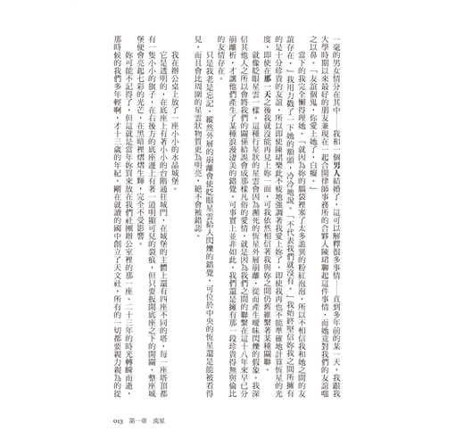 這個過程進行了很久,陳珺問得很詳細,連張云暘大學後移民的生活也都清楚地記下。我在一旁靜靜聽著,也就一點一滴釐清了她離開了我身邊後的人生。她現在是個小有名氣的攝影師,她擁有心因性的疾病固定會看心理醫生,她旅居海外至今也有十多年了難怪我這些年來一直找不到她,她至今尚未結婚,她和你私下裡往來已經有五年的時間。
