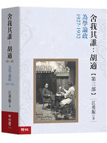 繼《舍我其誰:胡適,第一部:璞玉成璧,1891-1917》、《舍我其誰:胡適,第二部:日正當中,1917-1927》、《舍我其誰:胡適,第三部:為學論政,1927-1932》後,江勇振教授推出《舍我其誰:胡適,第四部:國師策士,1932-1962》。