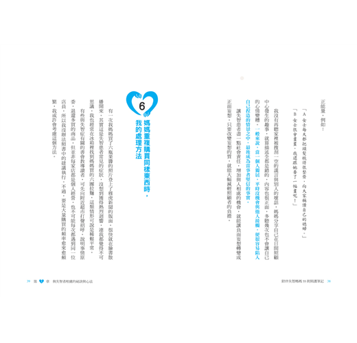 動不動就發飆、指責別人偷他的錢包,或忽然對他人大罵「吵死了」。作者將商業法則改造,並了解某個道理後,現在還可以跟媽媽虛應幾聲,讓兩人相處起來都很舒心。