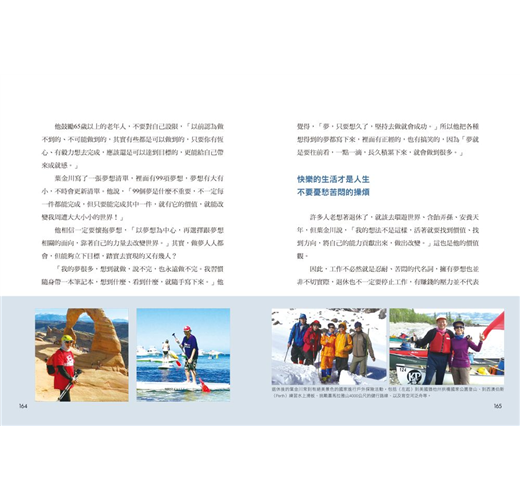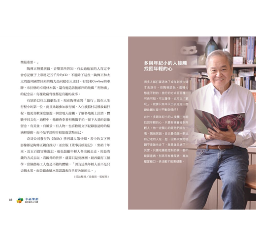他說,「生命的體會,每個階段都不一樣。年輕有年輕的玩法,老年有老年的玩法,就算年紀大了不能四處跑,也可以試著閉上眼睛,嗅嗅空氣的味道,是不是很像過去某次旅行聞到的氣味,然後回想那次旅行的美好經驗。」