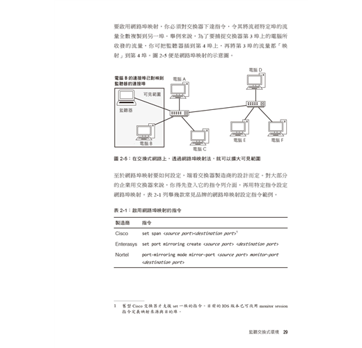 本章涵蓋各種在網路上安放封包監聽器的技巧。