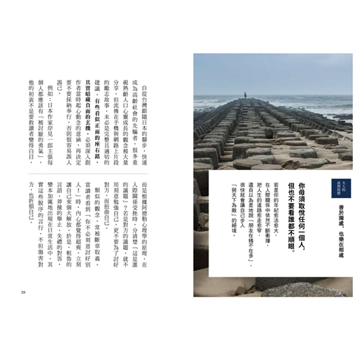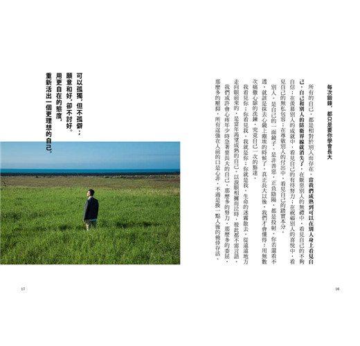 用更自在的態度,活出一個理想的自己吧。可以孤獨,但不孤僻;願意和好,卻不討好。人生,充滿大大小小的歧路與疑惑,試著翻轉心念,夯實你的生命厚度,就能更篤定從容地活在當下。