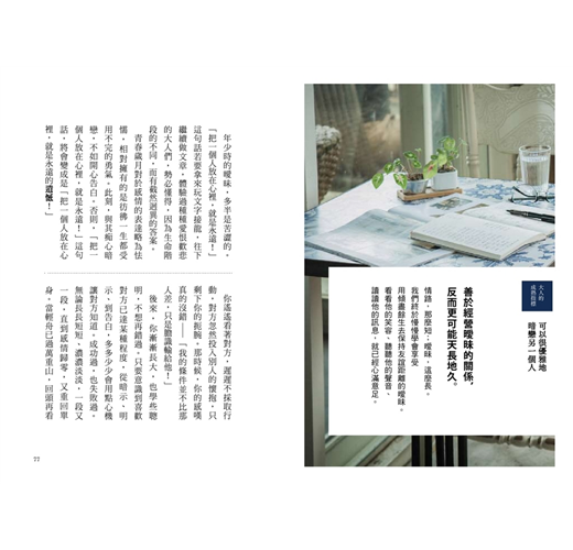 至於如何分辨自己是否足夠成熟?當然不會是功成名就,也不會是滄桑落寞,兩者都容易滲入世故油滑。反而是學會了簡簡單單的處世原則,讓自己無論人前人後都舒服自在,不用講場面話、也不必心虛,既不討好、也不委屈,體貼別人的同時,不會虧待自己。