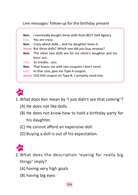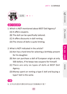 •此題屬於推測題型,要考生推測出Linda對戲服製造商的態度。而她的態度是根據她的朋友對她的反應來推測的。因此這種推測態度的題型同時也測試考生的單字量和讀出言外之意的能力。