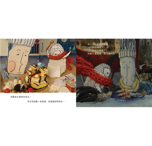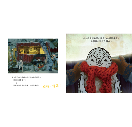 李言把名字與紅圍巾給了小企鵝保羅,之後在基地廚房的每一天,總有保羅潔白的身軀相伴,食物豐腴、歡樂滿溢,友誼毫不畏懼基地外的冰天雪地,暖心升溫。