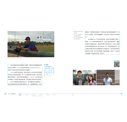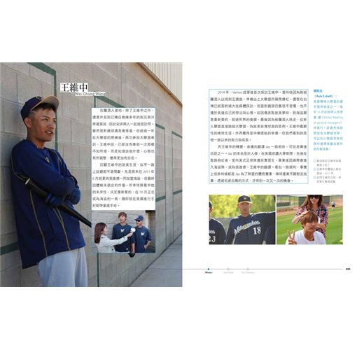 每次看到Vamos來美國拍攝都很開心,我相信其他小聯盟球員的感觸一定更深。因為這個團隊不是只採訪已經出名的選手,而是從球員最基層就開始拍攝,長期累積下來,對彼此都相當了解,無形中就不會有距離,所帶來的採訪也能讓球迷看到選手不同的一面。有些影音新聞限制之外的幕後故事,在這本書裡也完整呈現,像我私底下的小故事就被「爆料」了,其實有點害羞。