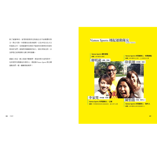 這本書將她們一路走來最真實的一面記錄了下來。像是為了前往不同地方拍攝認真的球員們必須省錢,選擇不搭飛機,改坐巴士,自己辛苦扛著行李爬上爬下,還有過開車移動長達15個小時,看得我也跟著她們又哭又笑。這些我在美國從沒經歷過的事,她們都做了,而且樂在其中。我很敬佩她們對體育的熱情,非常偉大。