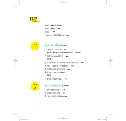 而她離開報社以後,協助了一個規模更小但更熱血的「Vamos Sports 翊起運動」團隊,這個團隊的成員在職場生涯的十字路口轉了一個彎,決定自己當上自己的老闆,每年春天越洋轉機在遼闊地北美大陸上飛車奔馳,把當年我的幻想逐漸變成了現實。婷雯則是這批採訪者的採訪者,紀錄這個團隊四年來海內外工作的點點滴滴,化成了文字跟圖像,做到另一件我想做而不敢做的事。如果你也有夢想,這本書會告訴你實現夢想需要多少努力。