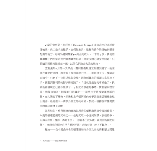 中國的「阿膠神話」帶來了非洲毛驢的滅頂之災/中產階級的名校爭奪戰/海外置產夢:買一個「做新加坡人」的感覺/不見光的世界第三大整形市場/中國創業者眾生相/成為京城新貴的「活佛」/千億市值的「廣場舞」經濟/被「小鮮肉」反噬的影視業/一年消滅十億「鬼子」的村莊/限韓令下的中國粉絲……
