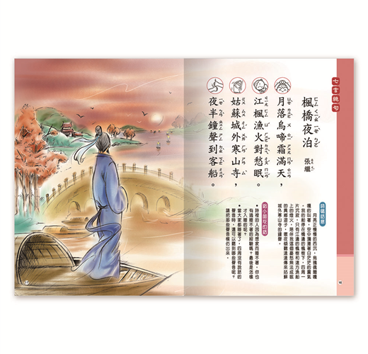 本書特別選輯了十二首易懂、易上口的唐詩,搭配精美插畫與淺顯易懂的白話文講解,讓孩子可以更加理解唐詩的內容涵意,體會古典詩詞的優美意境。