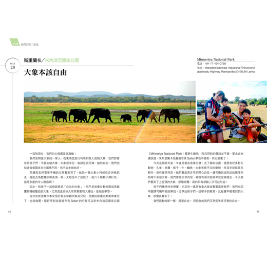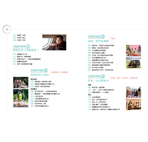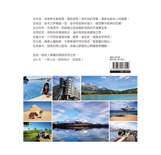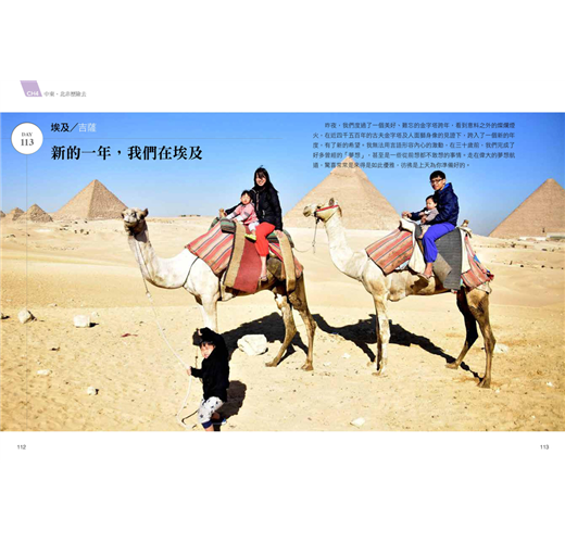 在印度,父子四人分別剪了頭髮、見到了難得一見的印度野牛;在義大利,三代堂同遊歐洲;在埃及金字塔前跨年……旅行中有美好,也有驚嚇。在準備過境以色列時被狙擊手瞄準、在印度貨幣一夜失效、半夜被丟在公路旁,在斯里蘭卡孩子身上爬滿大黑蟻……旅行中的好與壞,都是珍貴回憶,也都值得留下。