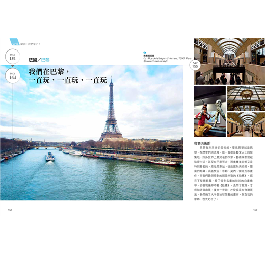 一家五口的環遊世界,有時開開心心,有時也累到鐵腿,但是過程中一家人團結緊密的情感,讓旅程更有味,不只是景點的回憶,更有三兄弟們的成長軌跡。