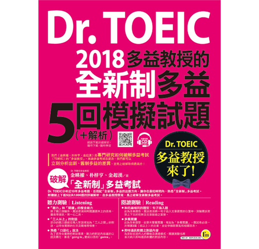 Dr. TOEIC多益教授作者群分析近10年來的多益考題,為各位考生破解多益考試的祕密,《Dr. TOEIC多益教授的2018全新制多益5回模擬試題(+解析)》試題內容加上全新制多益考題,100%完整呈現,保證一目了然,幫助各位考生抓住每一分!