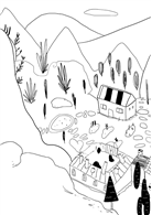 驚訝的里奈嘴巴張得開開地望著四周。眼前出現了一座小鎮,這裡就是警察先生說的銀山村嗎?不管怎樣,這裡都和里奈想像中的大不同。里奈以為來到銀山村會看見泛黑的矮房子群聚在紅褐色的土壤上,現在卻看見深綠色的森林裡出現紅色和奶油色的房子,石板鋪成的路面像是被雨淋過似的一片濕漉漉。森林裡一共只有六棟房子。四周一片鴉雀無聲,感覺像是一座無人小鎮。里奈不禁覺得自己像是來到了國外。