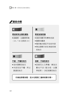 終章是考試前二十四小時的行動和作息。告訴你考試前該做和不該做的事情,以及讓你考試多拿一分的技巧與實用建議。