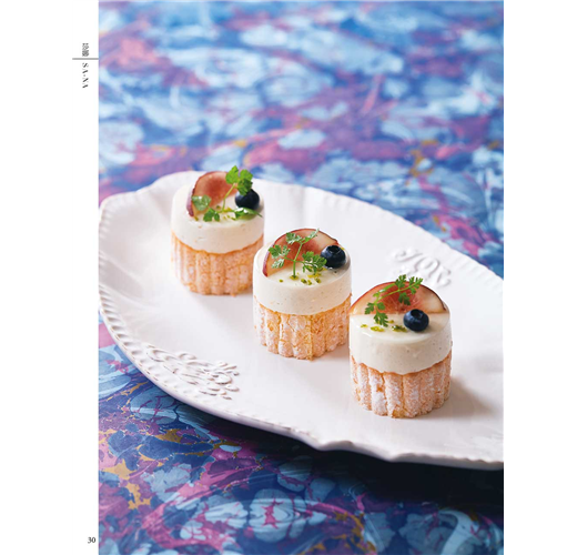 製作偏硬的慕斯或巴伐利亞奶凍時,小心不要讓食材出現氣泡,使用湯匙背面確實將慕斯塗滿模具。若邊緣與角落都能確實塗滿,就能打造出符合模具造型的外觀。