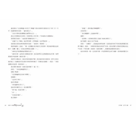 我出了第一份作業:「寫個故事,想寫什麼都可以。條件是,必須是你自己編的,不能抄電視上或書上的故事。要有點出人意料,讓我猜不到。要寫得好玩。」