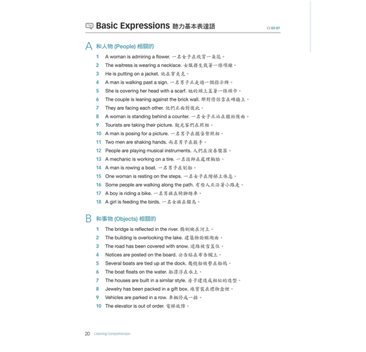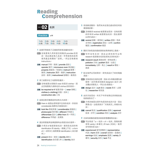 3. 精闢解析破解關鍵:練習試題難度最貼近官方考試,並提供翻譯、解析、必考字彙、片語與句型,使您在短時間內迅速培養臨場實戰能力。