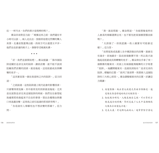 「如果每個人都開始將所遇到的挑戰視為一種陷阱,將獲得使眼前的困境發生轉變的新架構。本書裡,滿滿都是帶來驚喜的洞見與方法。」