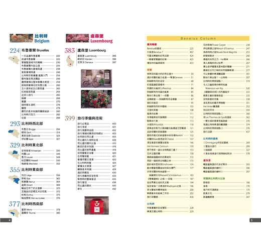 《地球步方—荷蘭 比利時 盧森堡》網羅了荷比盧全境各城市完整介紹,更有詳細的地圖與交通解析,並收集了各城市的購物、餐飲與住宿指南,即使初次造訪荷比盧,也能輕易上手。此外,書中特別收錄購物的基本知識、看懂荷蘭文和法文菜單、如何在比利時用餐等旅行實用情報,以及依照目的區分的好用觀光卡、小費的學問、荷蘭與比利時大比拚、走訪荷蘭的民族服飾等各式各樣有趣的專欄。