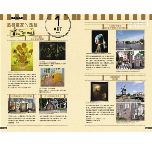 從現代的荷蘭風設計Dutch Design,挖掘話題建築&時尚設計品,並沿著綜橫交錯的運河,感受荷蘭的水都風情,從而走入梵谷、林布蘭、維梅爾筆下的世界。接著前往布魯塞爾的美術館鑑賞比利時宗教繪畫,或到布魯日感受時光彷如靜止的中世紀風情。而被森林溪流圍繞的內陸小國盧森堡,沿著城牆發展的舊城區與擁有現代高樓的新市街相互融合,城市表情同樣精采。