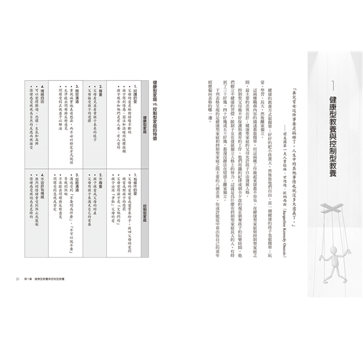 「邀請讀者探究自己落在光譜的何處,鼓勵讀者藉由自我檢視、自己負起責任及獨立自主來抵消控制型教養的負面效果。」