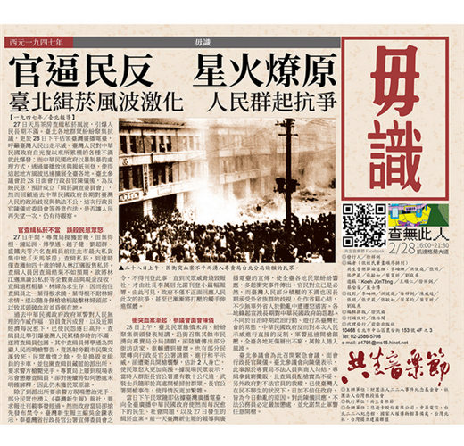 ‧社論-記憶或者遺忘?二二八事件的當代意義