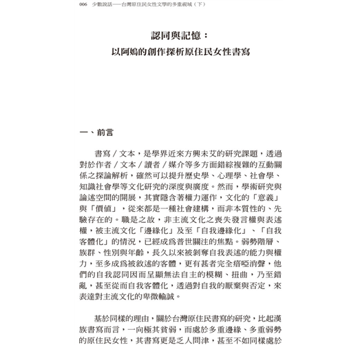 輯一、宏觀台灣原住民女性文學