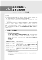本書依作者本身豐富的經驗編寫,依據勞委會公佈的國貿業務丙等技術士技能檢定學科及術科,以有組織有系統的方式整理考試重點,解說飆分技巧,掌握正確的概念及答題關鍵,為專供有志參加國貿業務的考生準備考試前所需的最佳參考書籍,擁有本書將掌握考試奪分秘訣,了解答題方向和正確解析,建議考生運用本書熟練學科800題題庫,再依術科五範圍熟練最佳解析答題方式和技巧,必能笑傲考場!